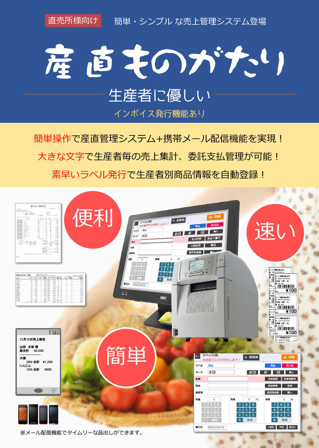 「産直ものがたり」は、直売所様のために生まれた、シンプルで頼れる売上管理システムです。